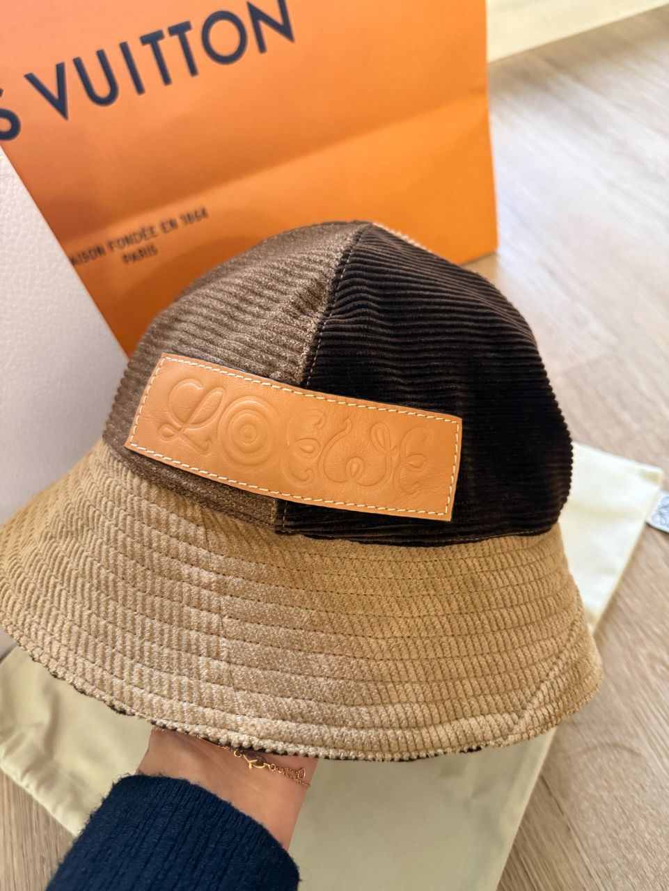 3. LOEWE 棕色絨面皮標漁夫帽