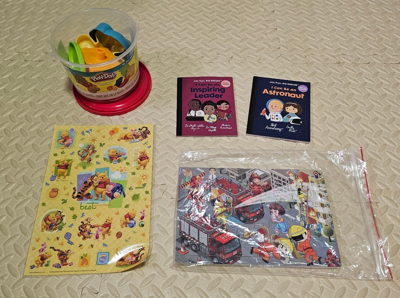 3. 拼圖 + 貼紙 + 英文讀本*2 + 黏土工具