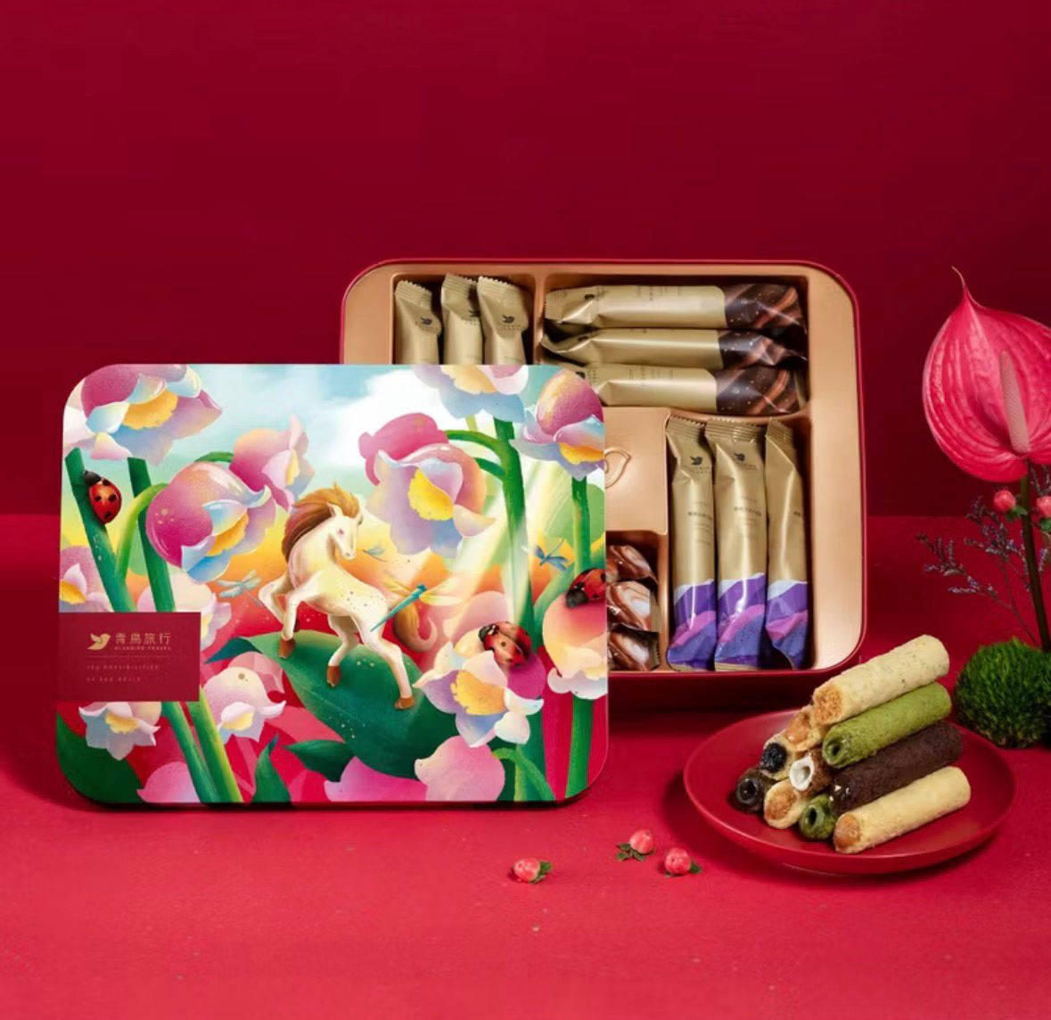 1.青鳥旅行蛋捲春光躍影綜合蛋捲禮盒24入(附提袋/鐵盒款)