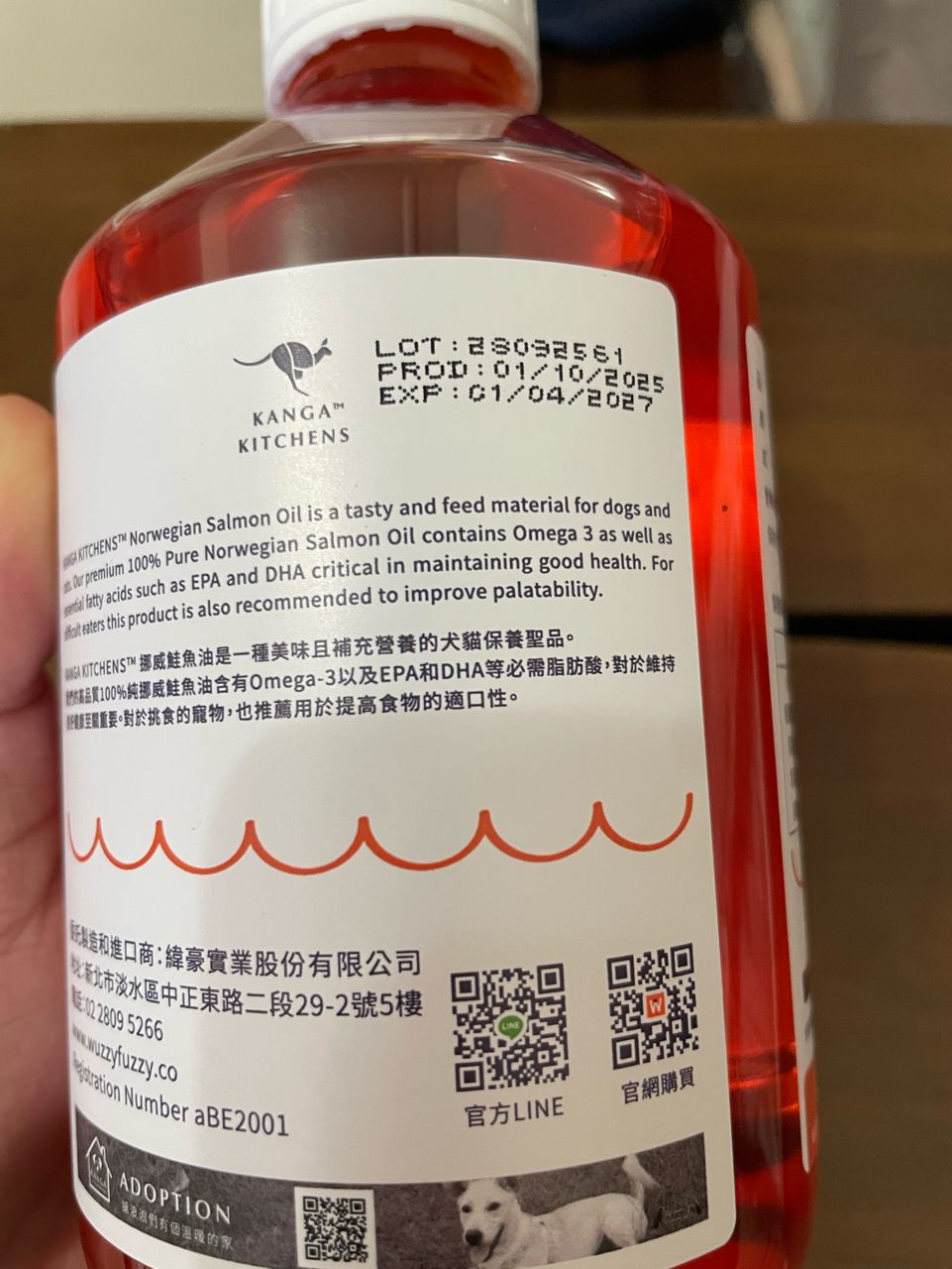 2.商品名稱: 澳洲袋鼠廚房 100%純挪威魚油500ml 寵物魚油一罐