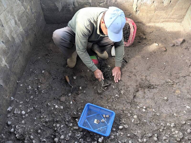 考古探坑貝塚現象。(南市文化局提供)