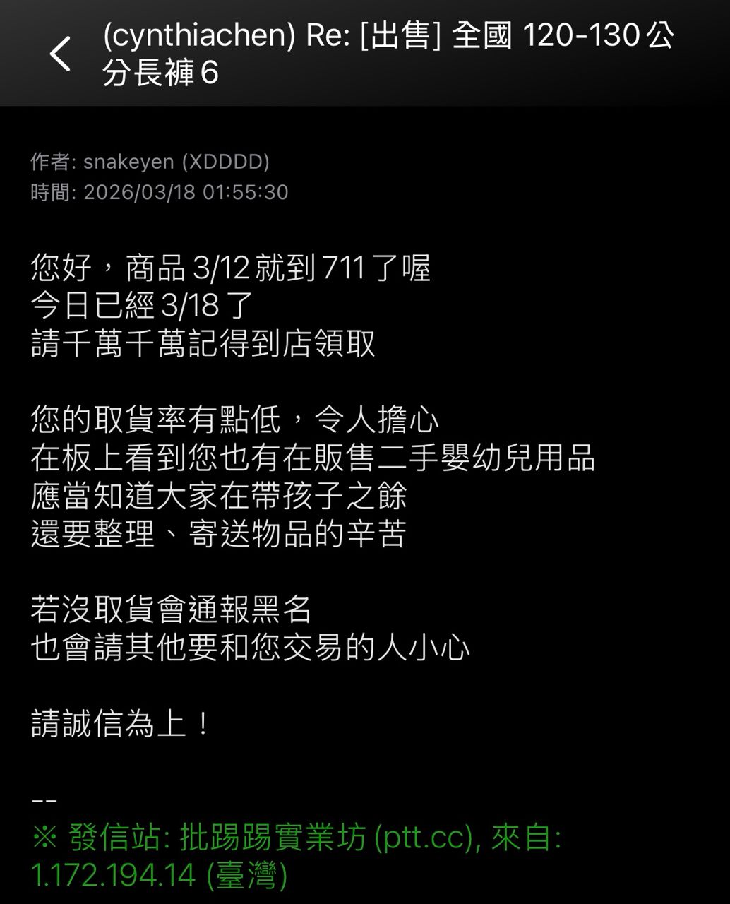 另外由於看到他的取貨率竟然只有67%(出貨前好像看不到這個?)覺得這個人不取貨的