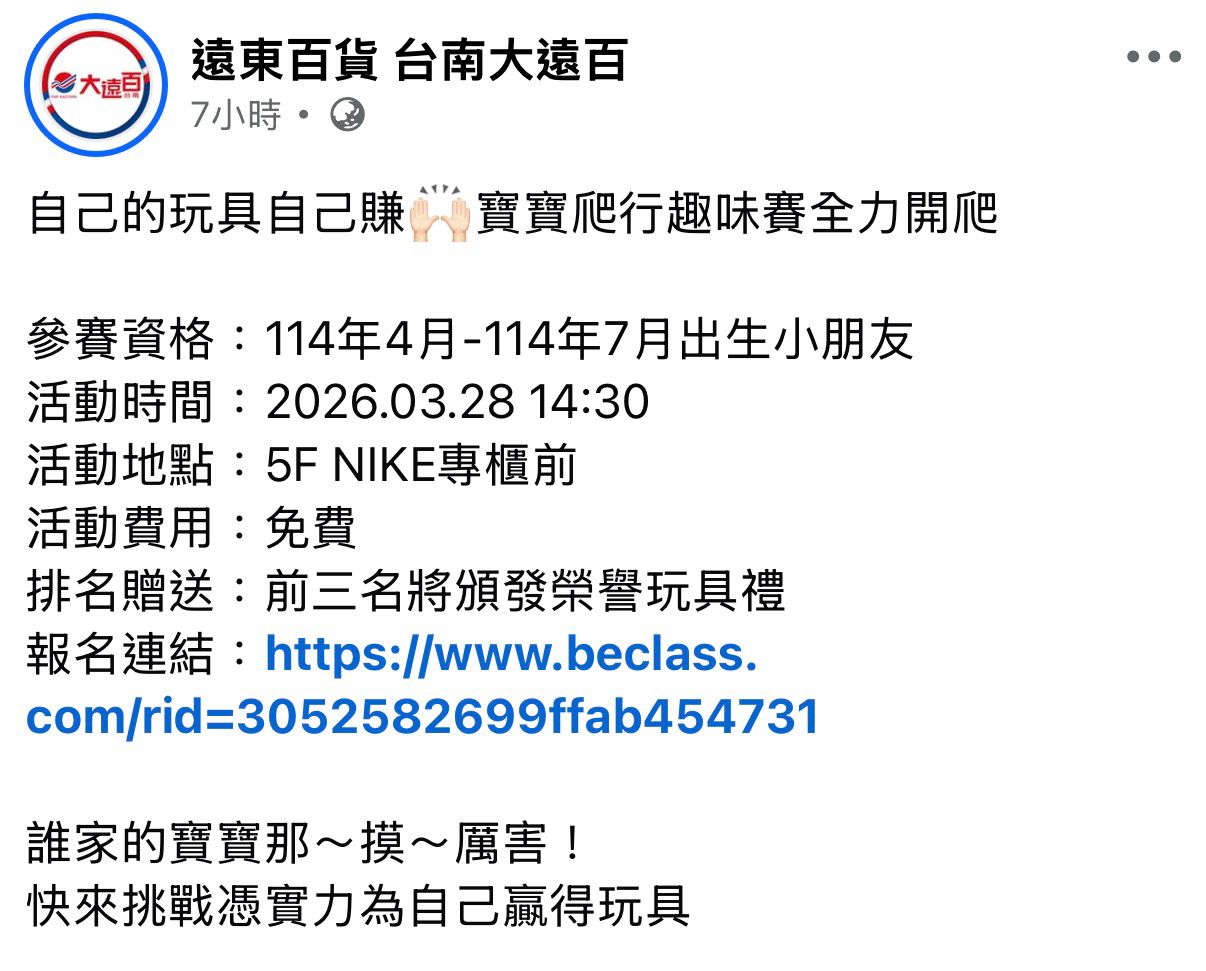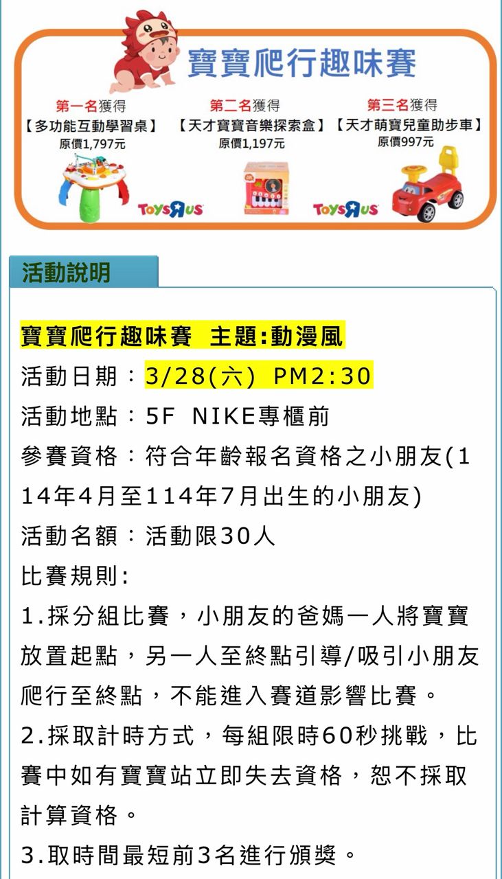 [活動] 大遠百 寶寶爬行比賽