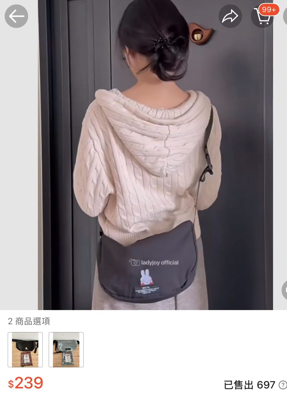 日本米菲兔卡通可愛刺繡戶外便攜防水單肩斜挎包腋下包胸包黑色款=4罐