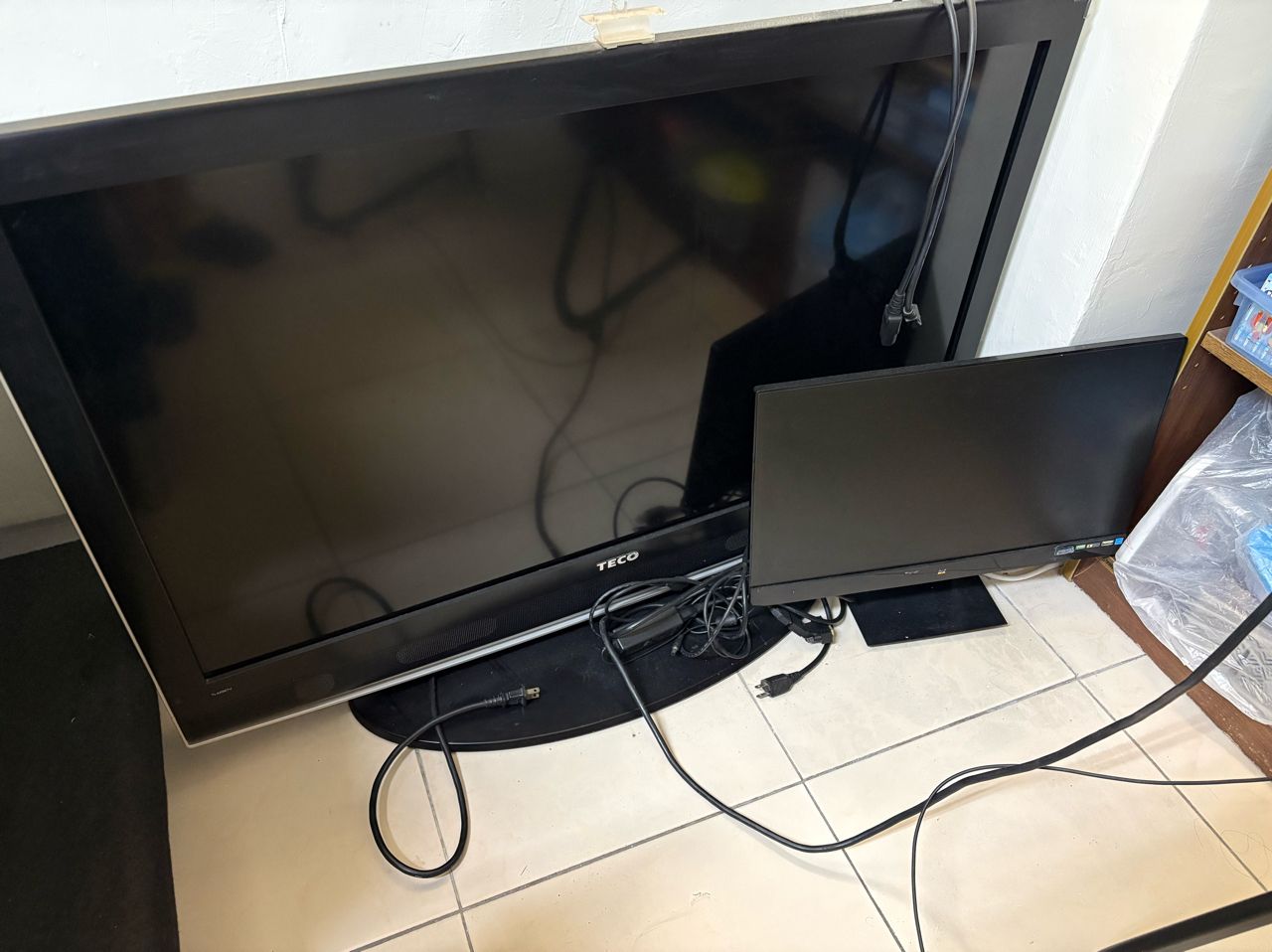 4、陳年50吋大電視,畫質有點跑掉了,也找不到遙控器,還有一台小的電腦螢幕,插上