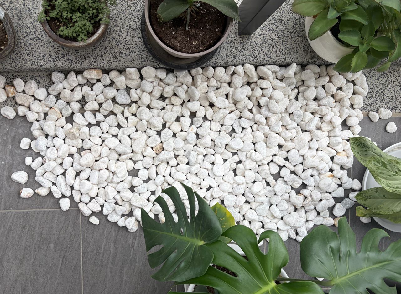 : 說明:7分(3-5cm)特白石,用於陽台裝飾,全部兩箱共約33公斤。