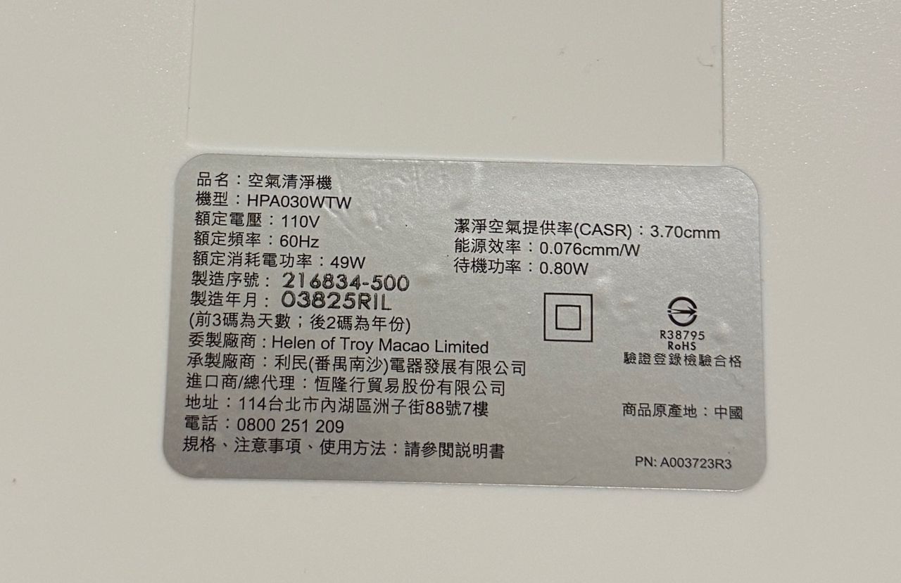 美國Honeywell 舒淨空氣清淨機 HPA030WTW(適用坪數4.5-9坪)