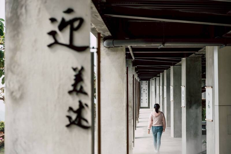 東山仙湖農場迎山客房的藝術廊道。(農場提供)