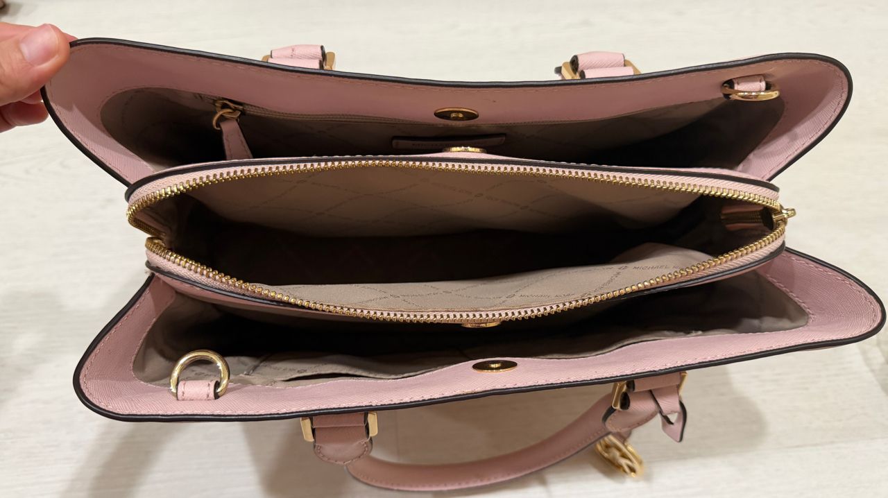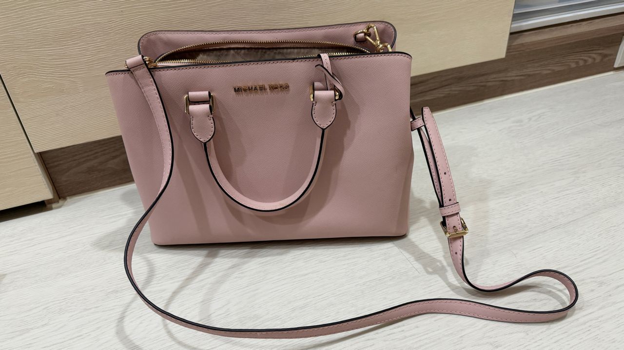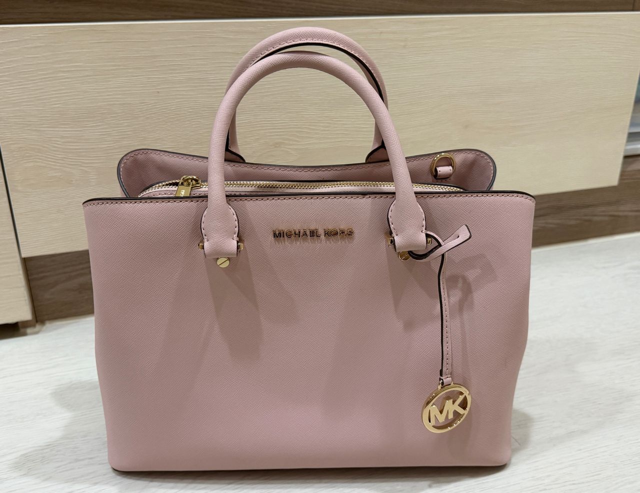 1.二手專櫃正品MK櫻花粉皮革包,可手提、肩背(肩背帶可拆),8成新售1500元