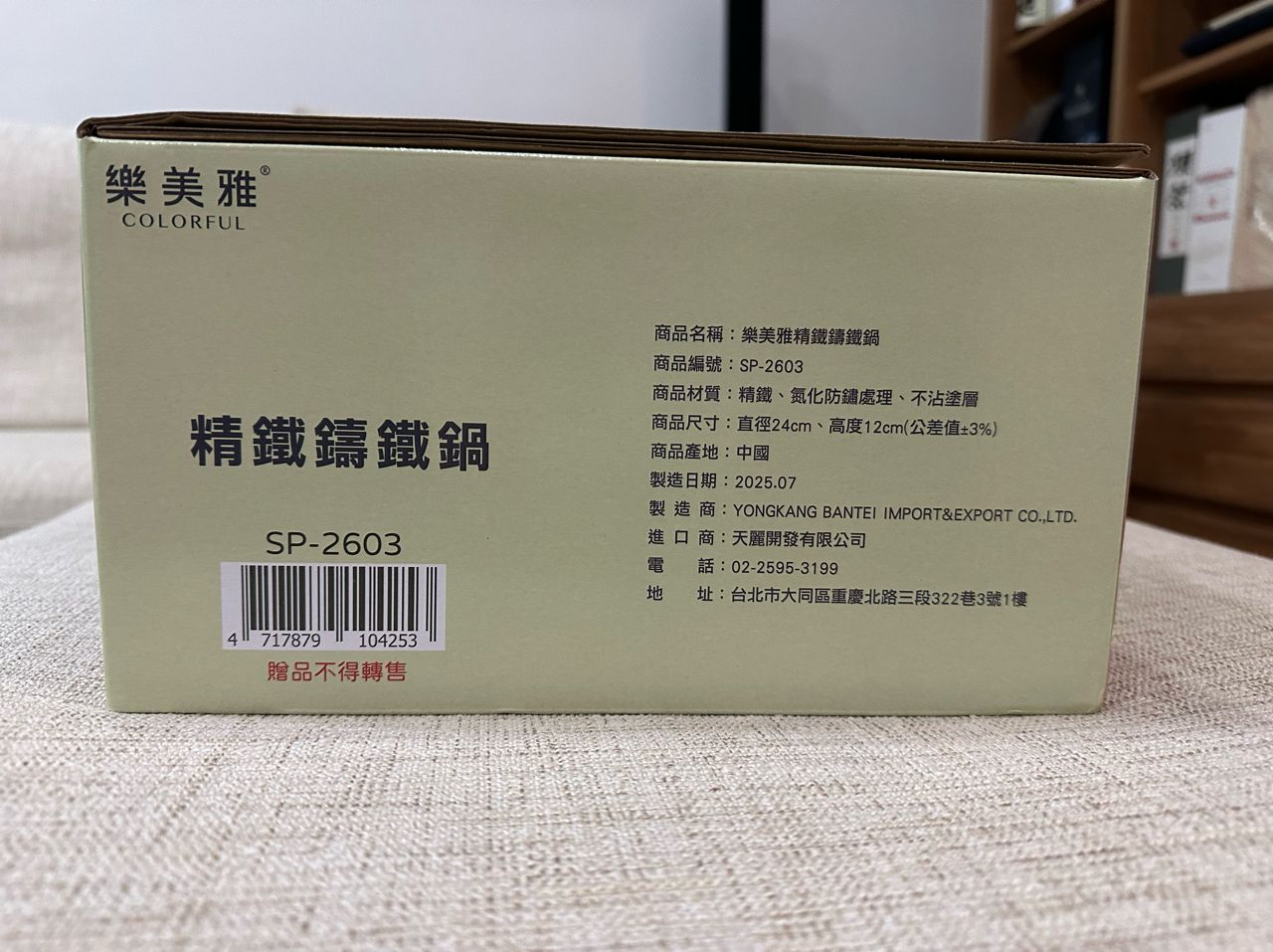 全新 樂美雅24公分精鐵鑄鐵鍋【SP-2603】
