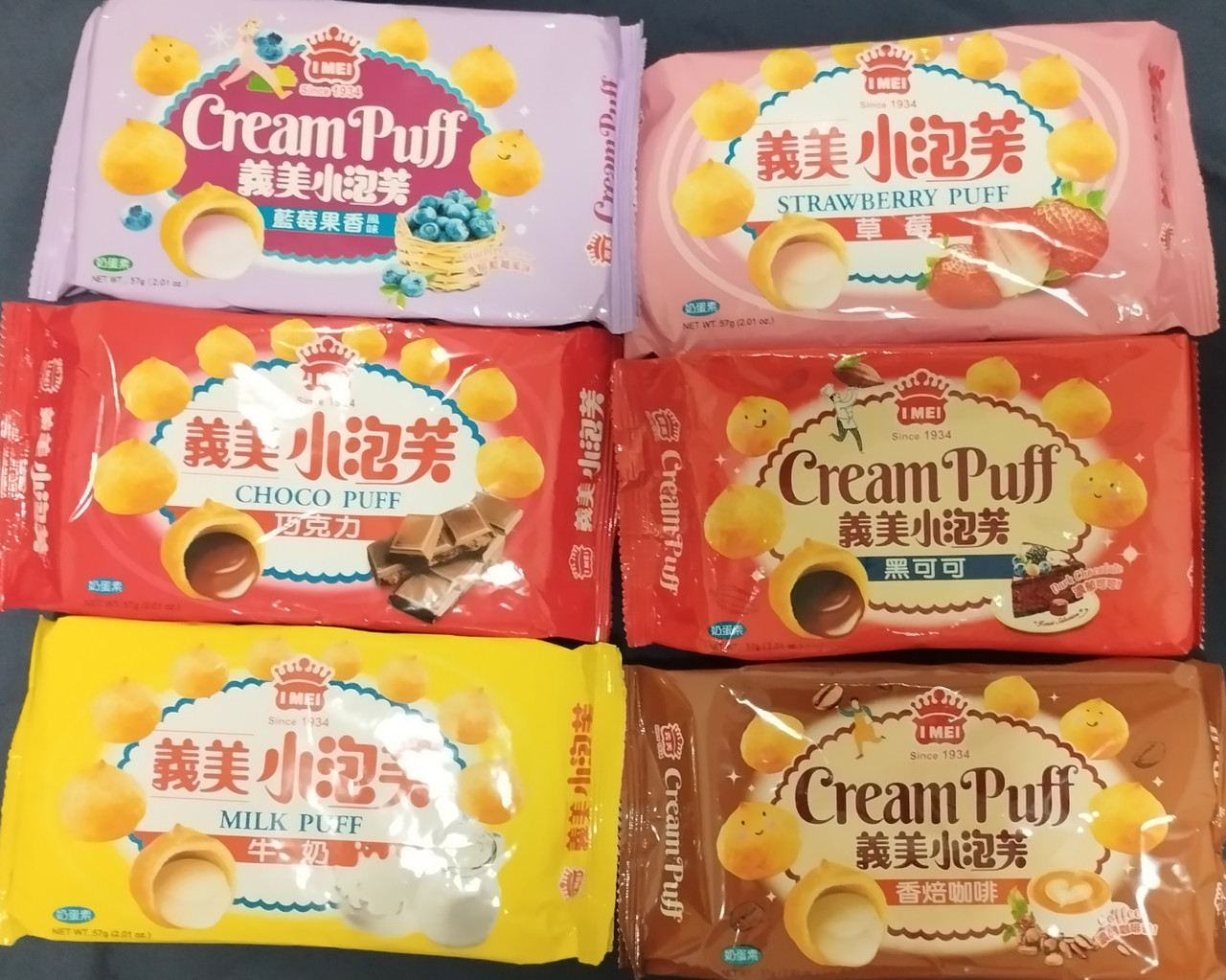 12.盒裝小泡芙藍莓30包,牛奶20包,草莓12包,黑可可24包,咖啡4包,一包25元,有效