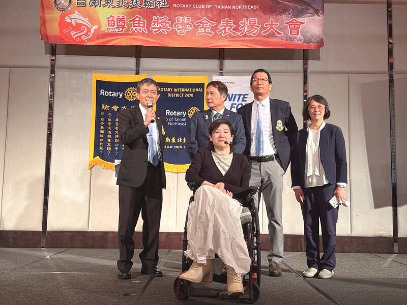 台南東北扶輪社頒發「鱒魚獎學金」,鼓勵逆境中仍願意奮力前行的孩子。(台南東北扶