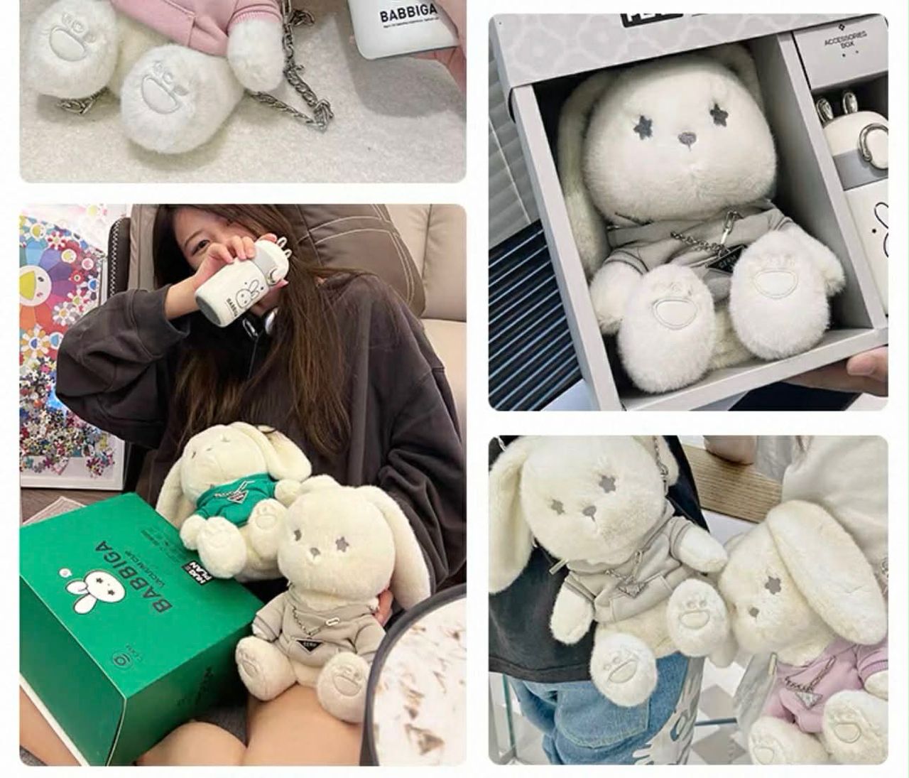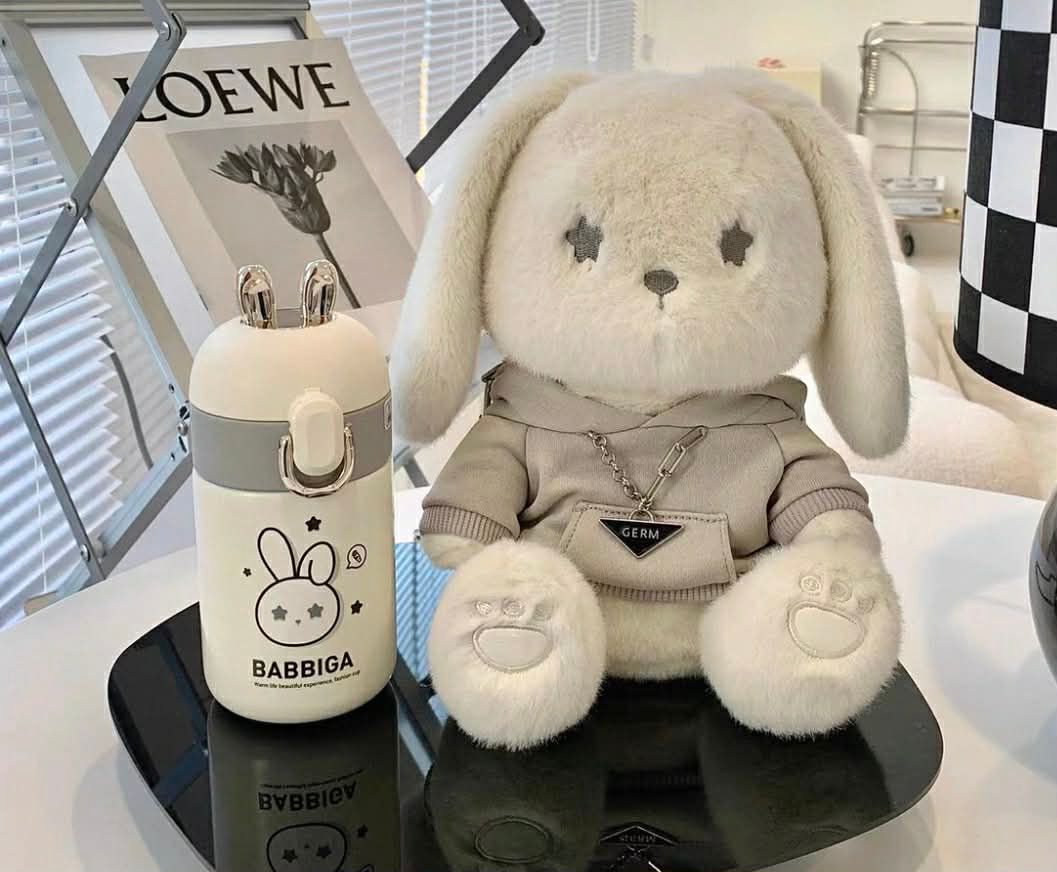 7、【二手】Germ星願兔子《灰色》娃娃+保溫瓶迷你口袋杯*1