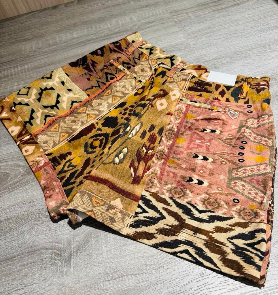 1、二手義大利牛仔品牌 PLEASE,以心形標誌為特征的冬季色調短褲,以棕色為底,加上