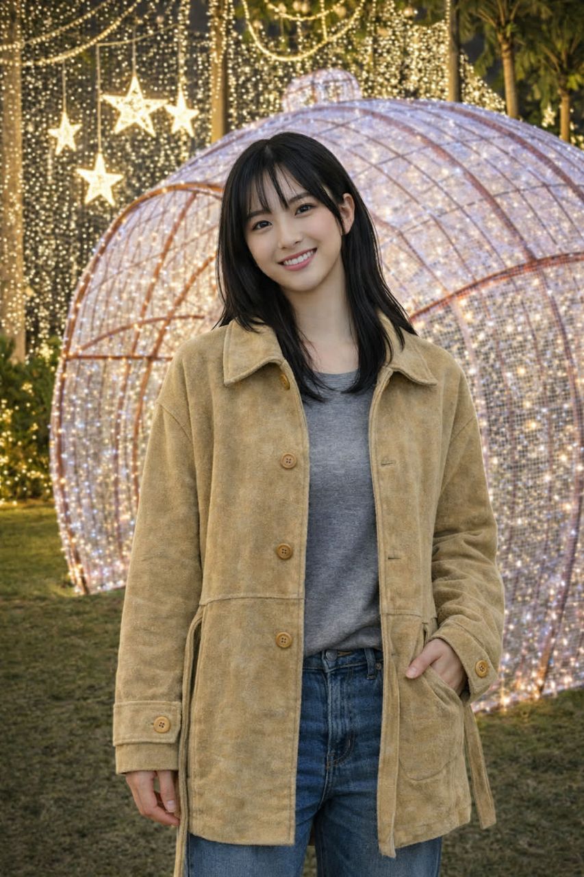 @麂皮大衣拿在手時會有些份量,穿上身卻很輕盈,修飾身材又保暖,非常適合冬季