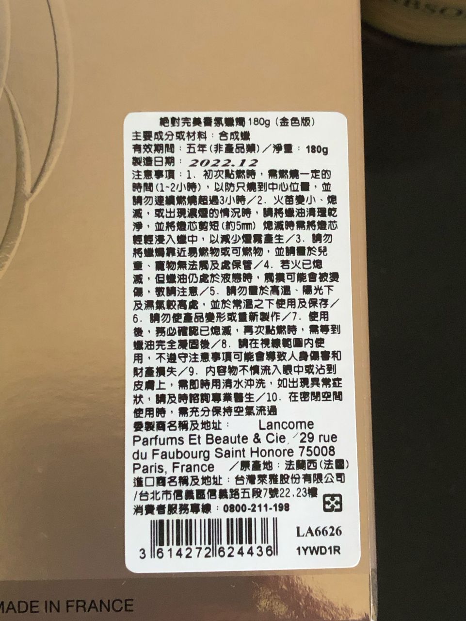 [物品]LANCOME 絕對完美香氛蠟燭 180g (金色版)
