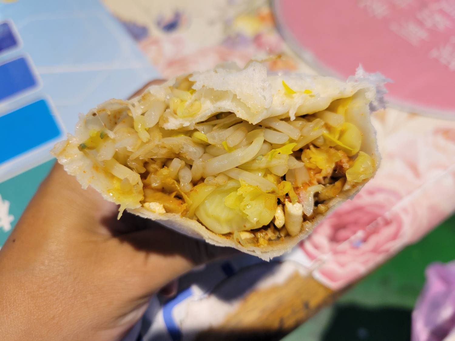 潤餅皮有兩層,厚度Q勁尚可。內餡的高麗菜和豆芽菜大