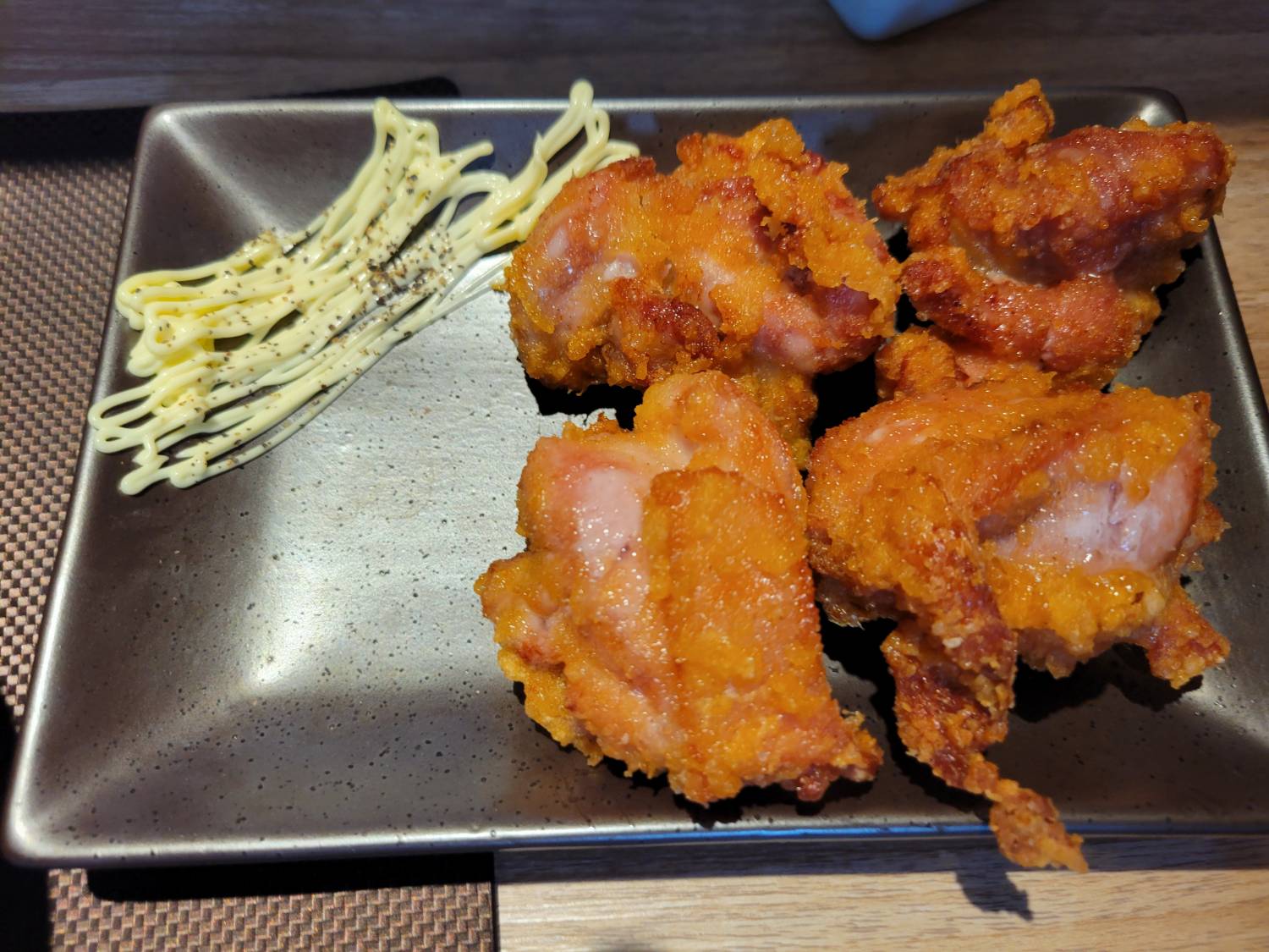 炸雞外脆內彈嫩,略帶雞汁,只是雞肉醃得味道較淡,可