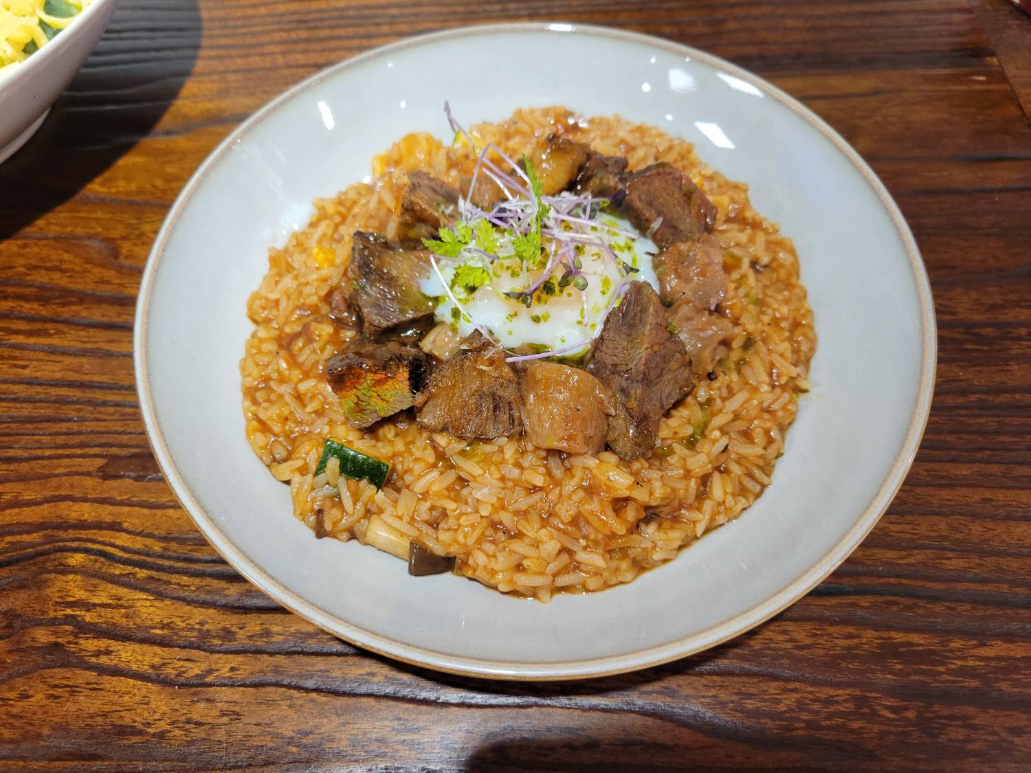 燉飯口感偏軟,紅酒醬汁溫和,牛肉算嫩。只是自己對紅