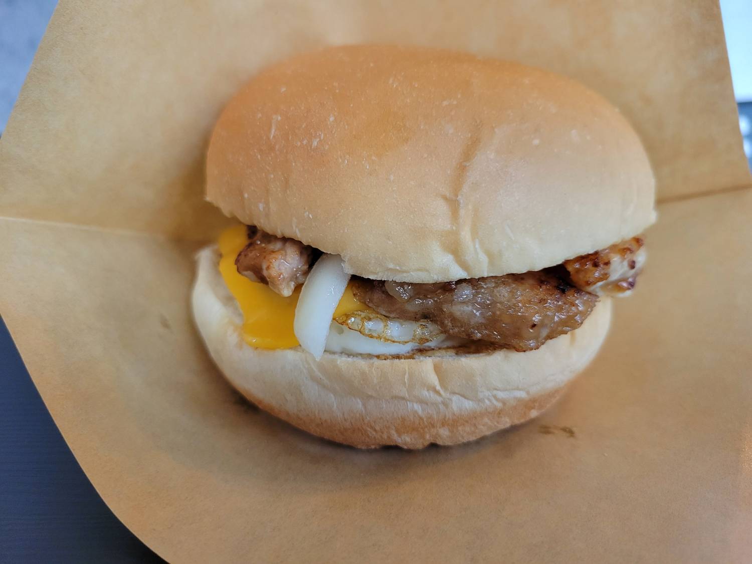 漢堡麵包表面烤出酥度,厚切豬排紮實有咬勁又醃得入味