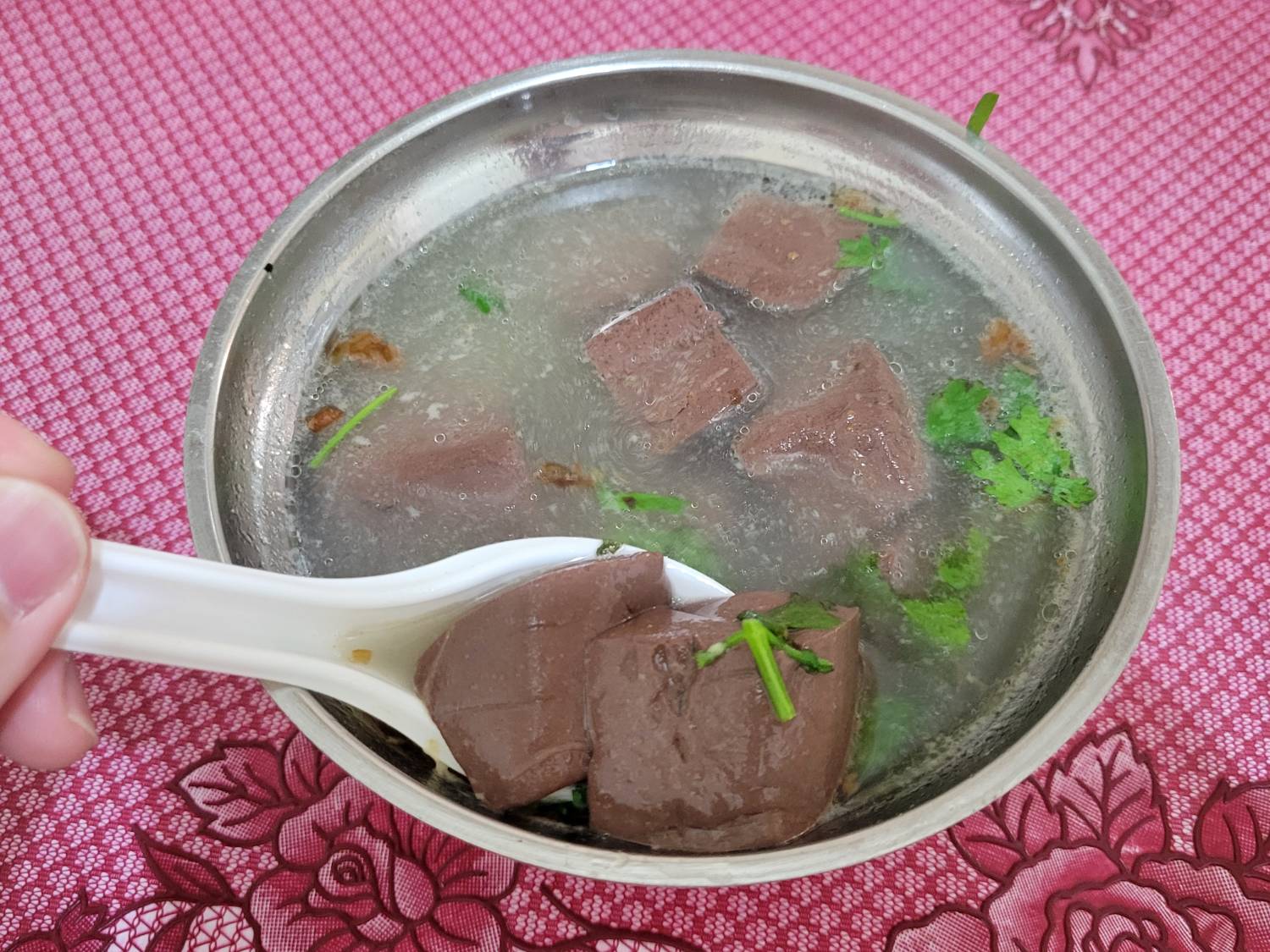 豬血湯的豬血紮實無臊。湯頭調味為主,放了香菜但沒有