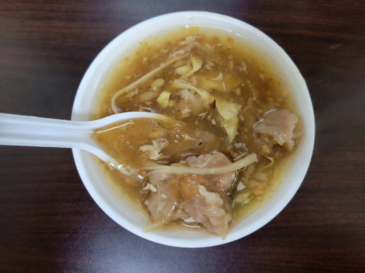 肉焿湯調味及勾芡較重,味偏甜。肉焿很大塊,但漿的成