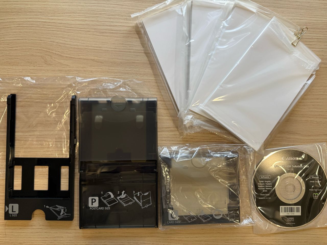索取會隨本機附上相印紙、三種尺寸的相紙匣以及驅動程式光碟片。