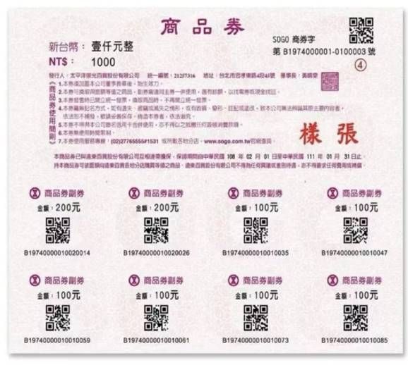 出售物品: 遠東SOGO禮券 (面額500),共100張