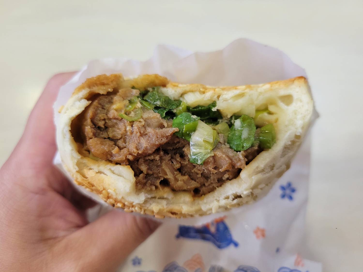 肉餡很鹹,導致肉香吃不大出。青蔥看來很新鮮,但無論