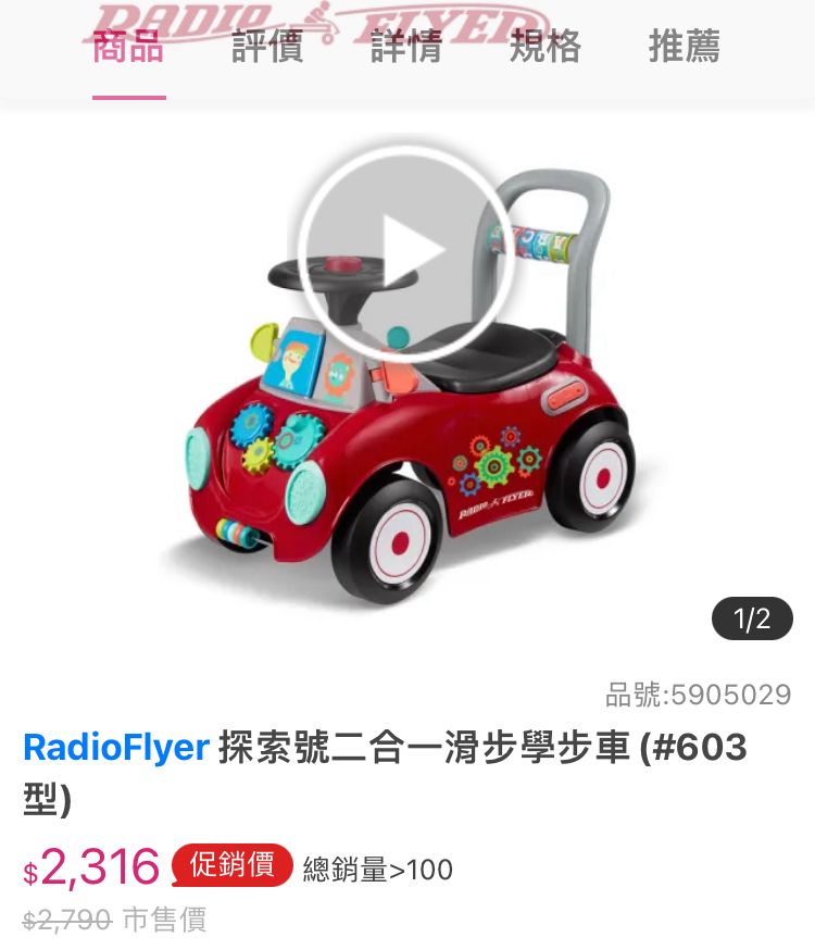 3、RadioFlyer二合一滑步學步車