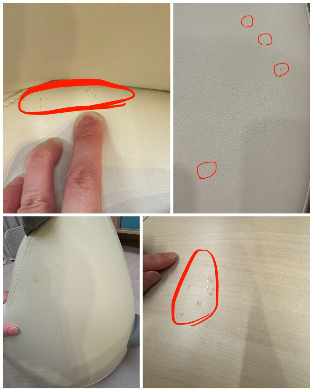沙發熊背有一點點染色(如圖),椅背跟座椅的縫有一點小破洞,椅面也有四個極小洞(