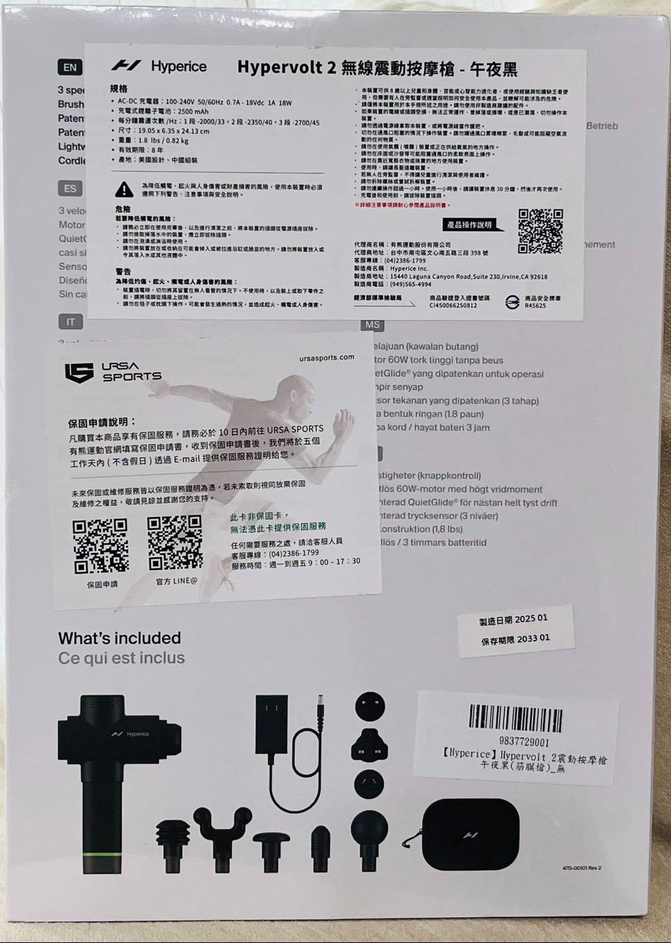出售物品:Hyperice Hypervolt 2震動按摩槍(筋膜槍) 午夜黑