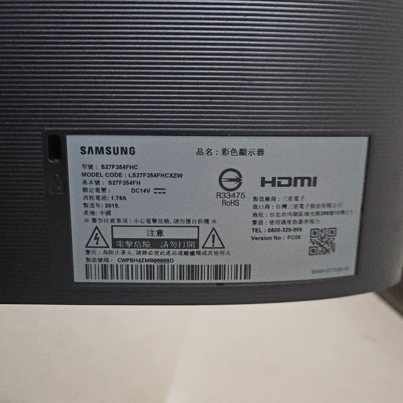 出售物品:三星螢幕27吋 型號S27F354FHC