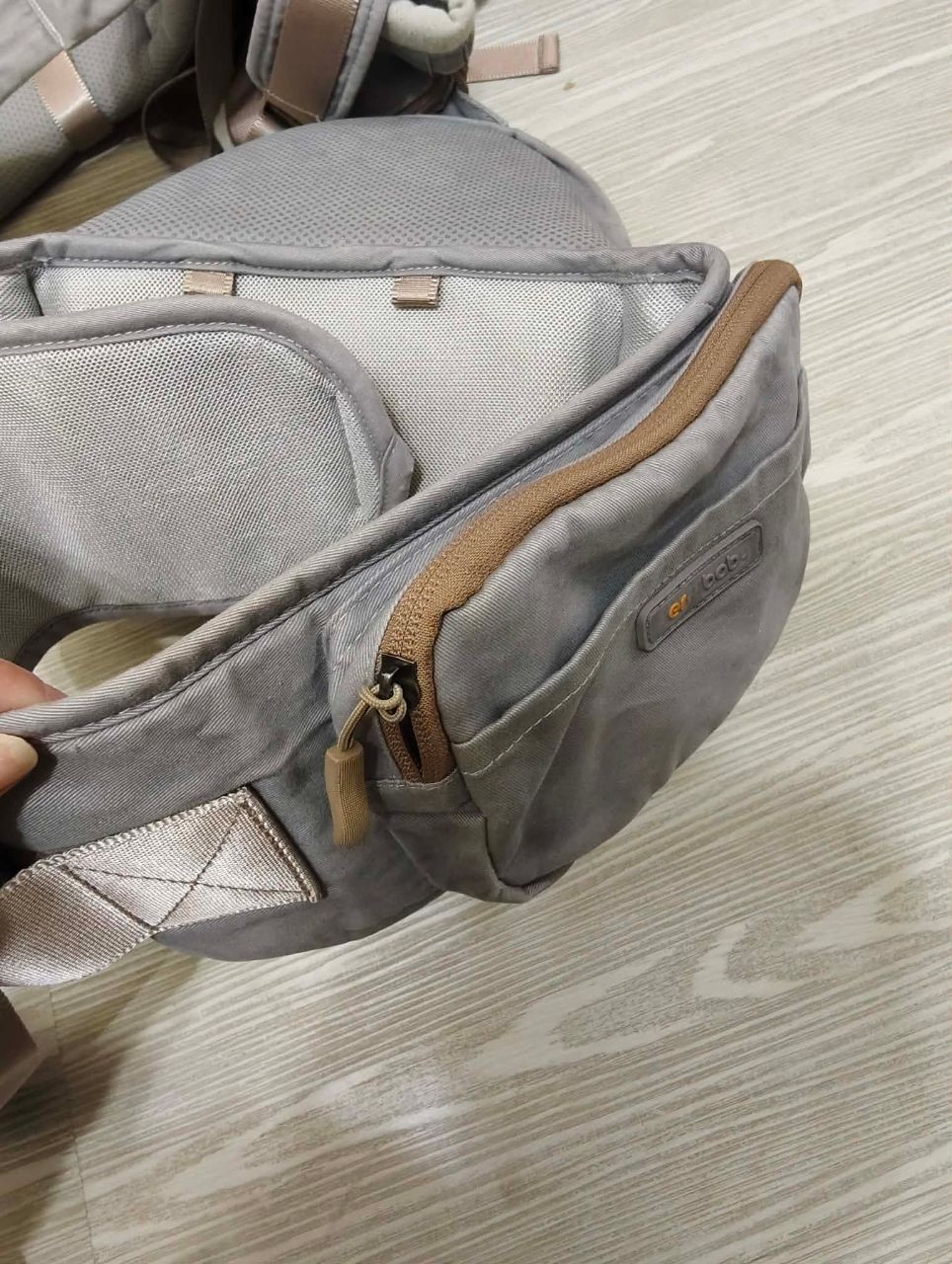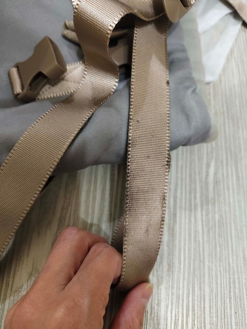 後面揹帶處有一處髒汙比較明顯,其餘物況如圖,約8成新。腰間有多一道安全釦,雖然