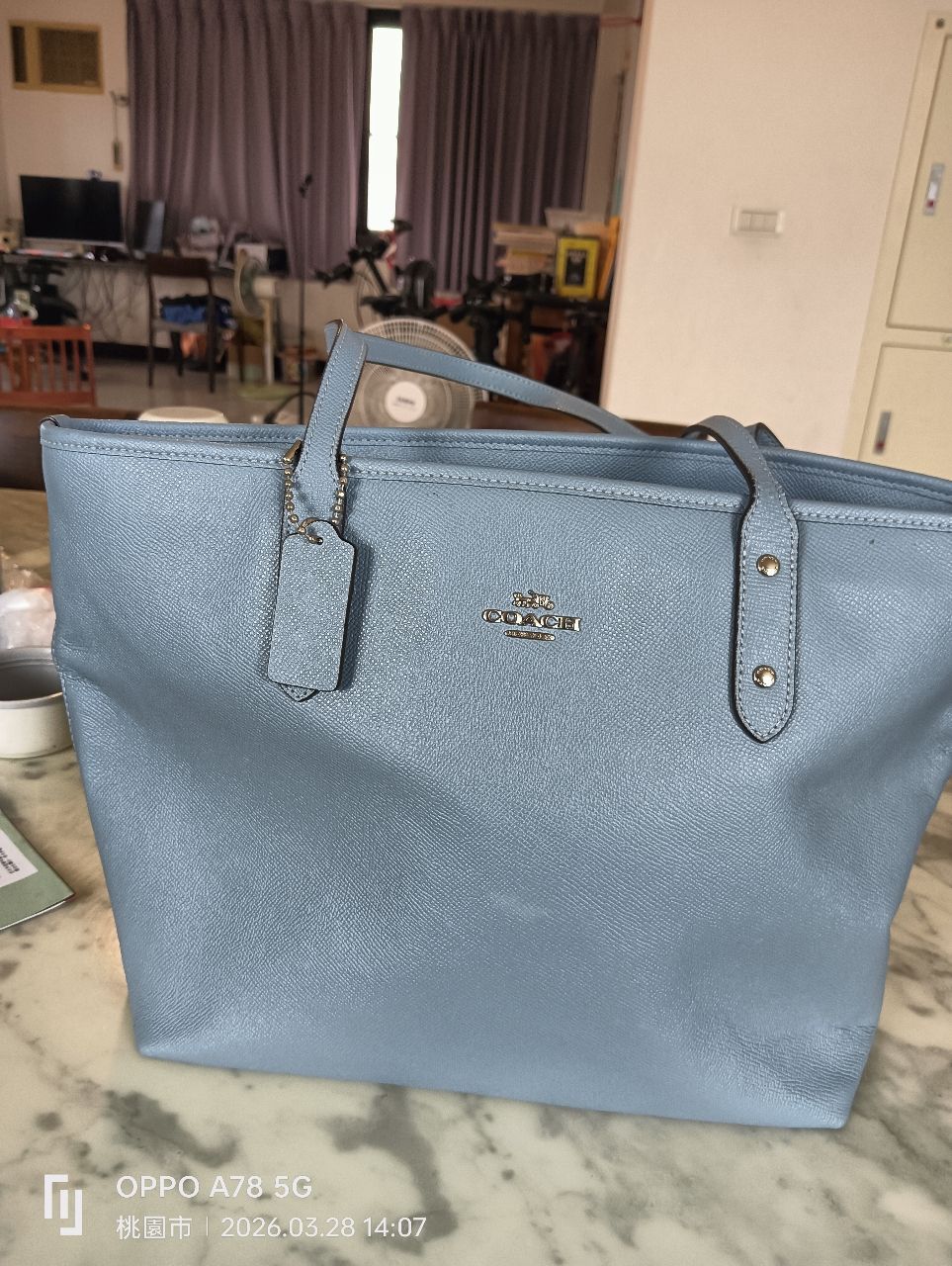 1.COACH 女用天藍中托特包