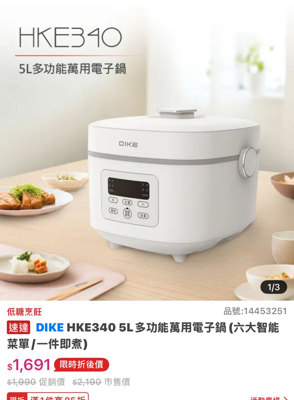 1.DIKE 5L多功能萬用電子鍋 HKE340WT 電鍋 SGS減醣認證 日系美型家電 簡約風