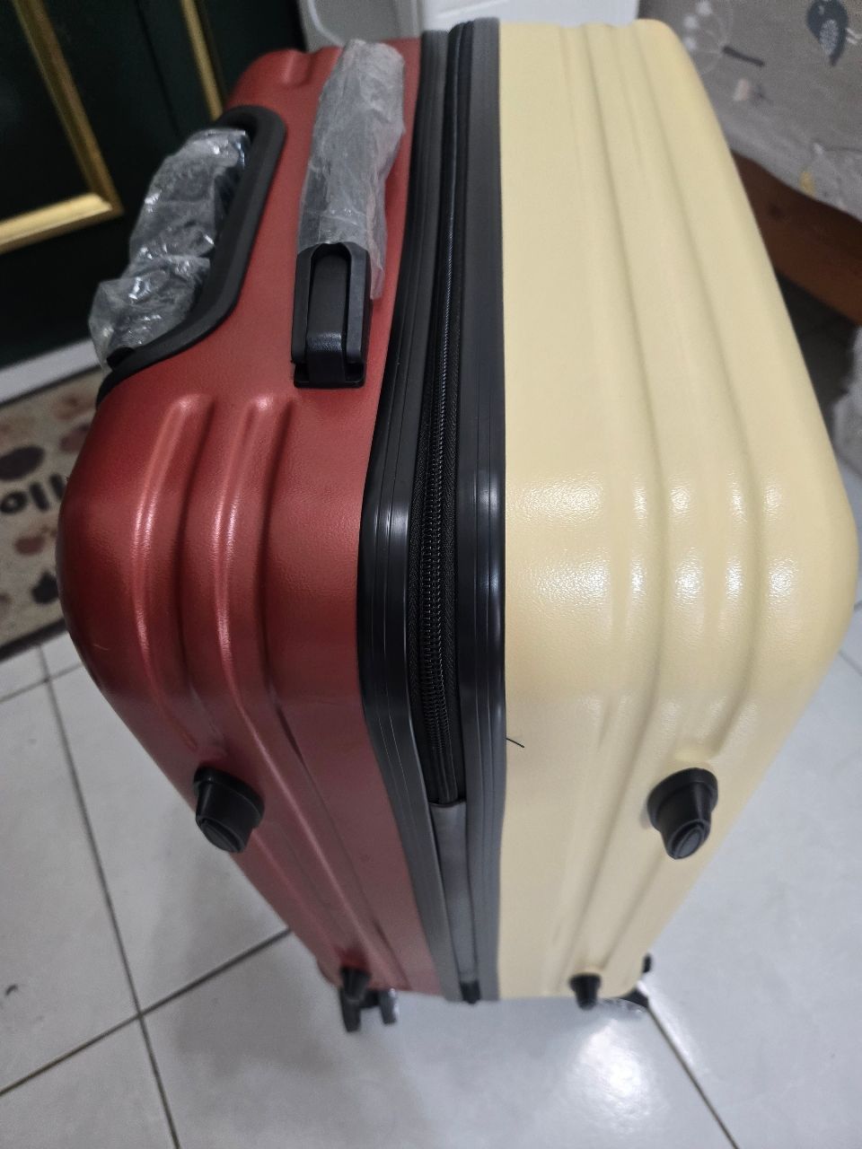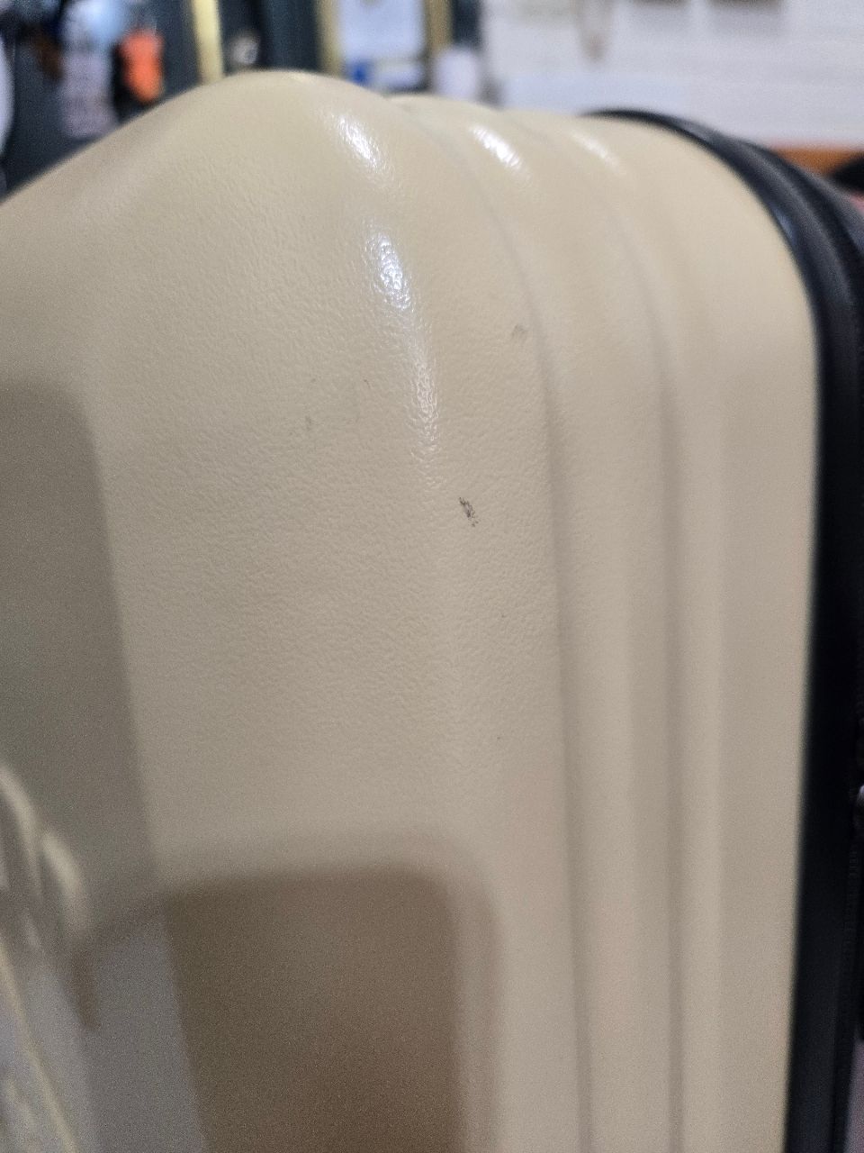 拉鍊滑順,重量輕,有使用痕跡,內膽些許泛黃,非海關鎖(密碼鎖數字有部分掉漆,密