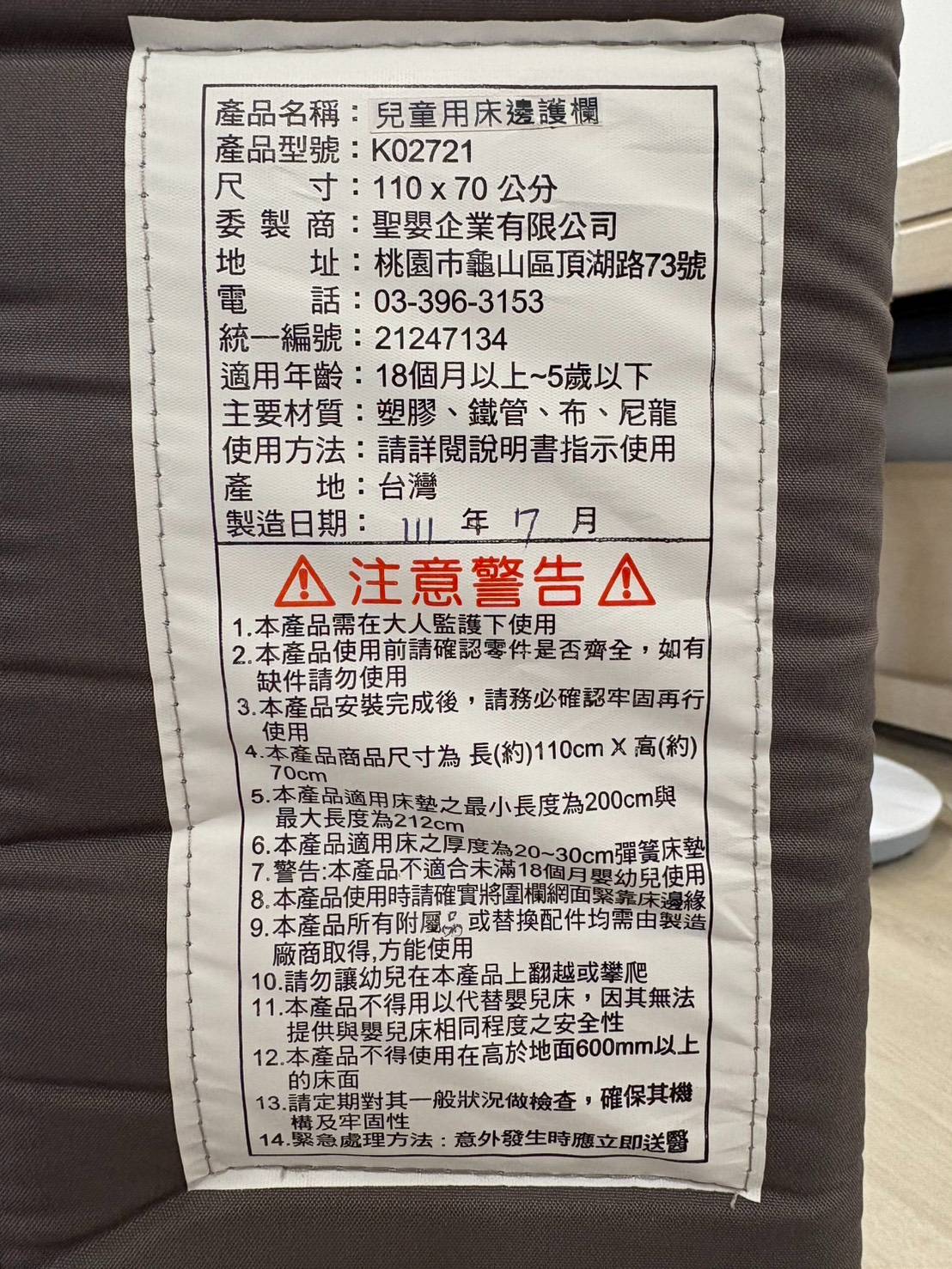 [出售]Vivibaby 兒童用床邊護欄 二手 9成新 $500